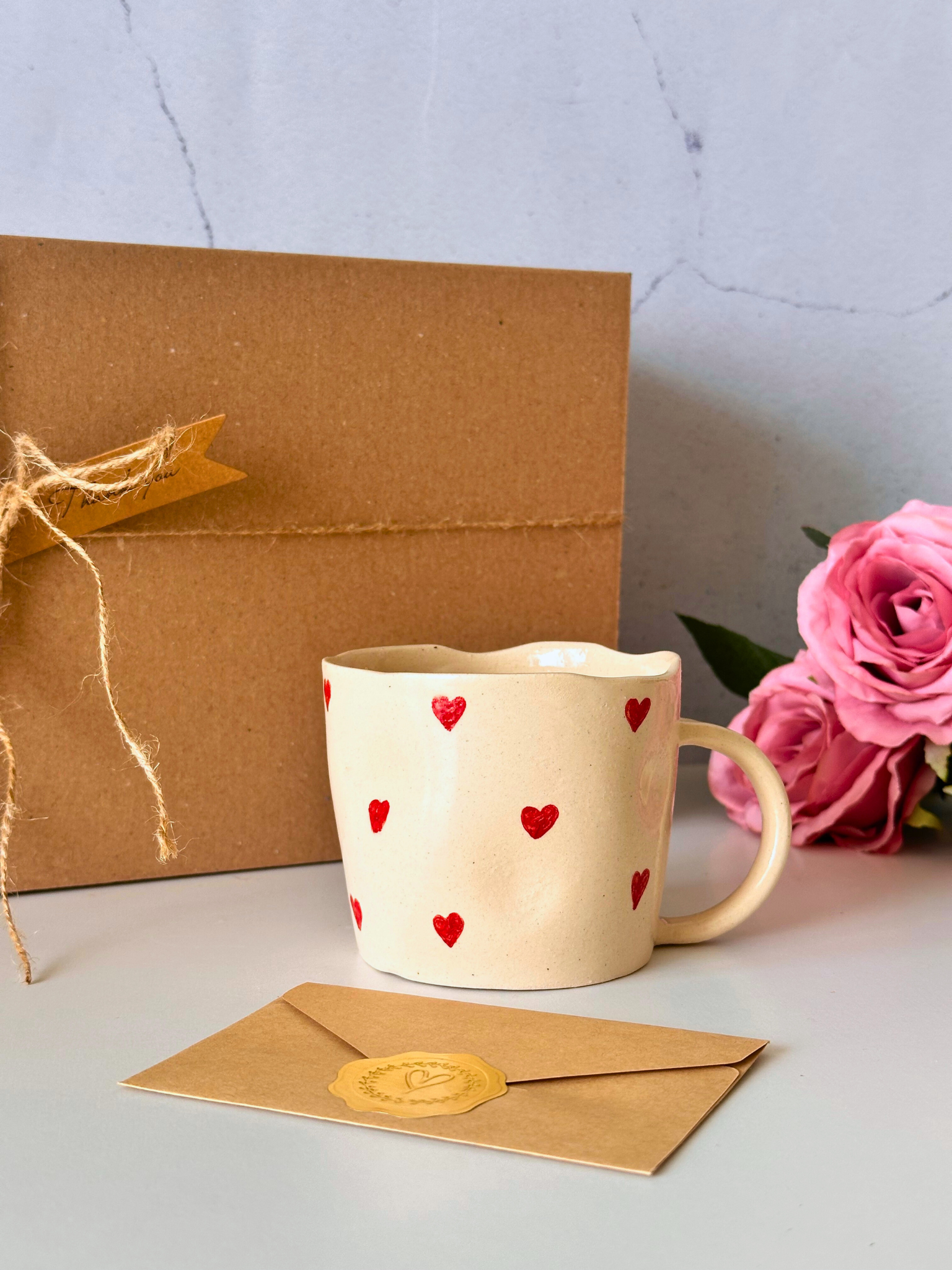 Керамична чаша със сърца